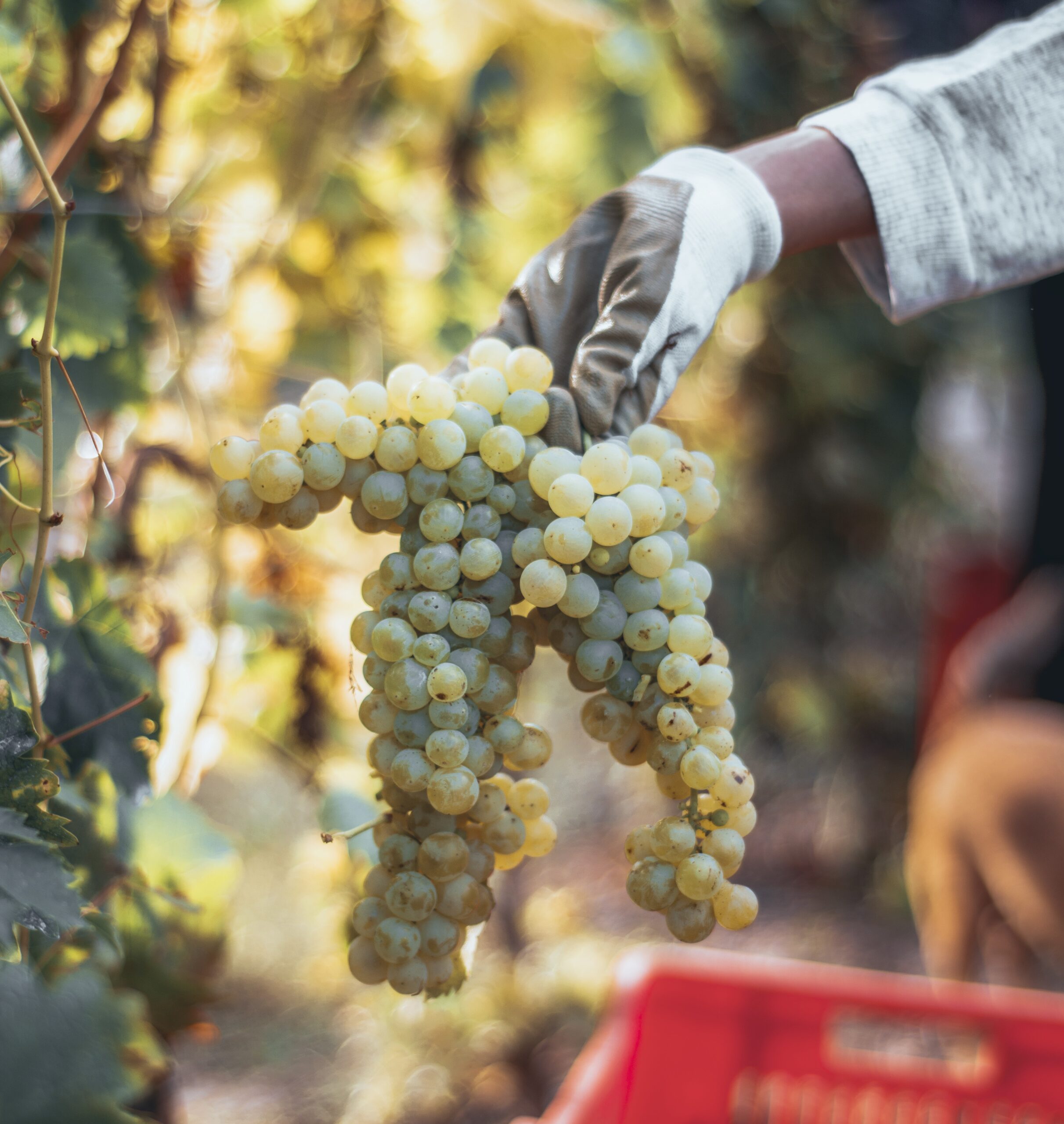 En la producción tradicional de vino blanco, las uvas se prensan en bodega mediante maquinaria especializada que extrae el jugo de la fruta— separándolo de las cascaras, que son descartadas inmediatamente.