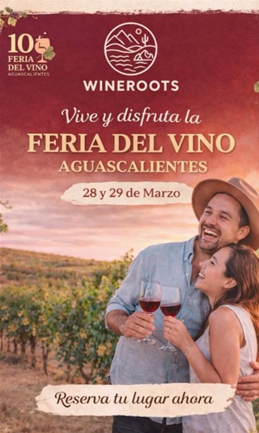 WineRoots te invita a un viaje inolvidable entre copas y viñedos. Asiste a la 10ª Feria del Vino en Aguascalientes este próximo 28 y 29 de marzo. Han preparado una experiencia saliendo desde Querétaro. El paquete incluye: Hospedaje en Hotel 5* (Las Trojes) con desayuno buffet y acceso total a la Feria. Además de un city tour.